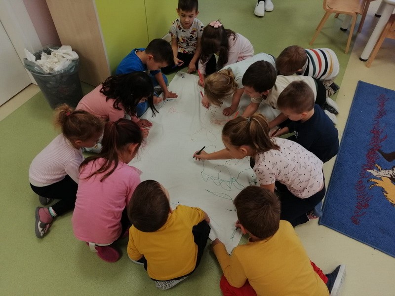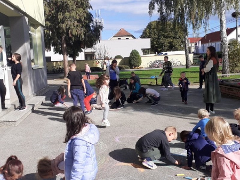 U suradnji sa Osnovnom školom Ante Starčevića Rešetari, djeca iz skupina Žabice i Ribice, okupila su se u školskom dvorištu zajedno sa pedagoginjom, knjižničarkom i učenicima kako bi na listiće pisali poruke i crtežima iskazivali svoje želje i prava odraslima i svijetu koje su potom stavljali na „Stablo poruka“. Ujedno su oslikavali školsko dvorište kredama u boji s istim ciljem. Također se izradio i video s dječjim izjavama o dječjem tjednu koji su snimile pedagoginja Marija Dautović i knjižničarka Daniela Gubić iz osnovne škole u skupinama Žabice i Ribice.