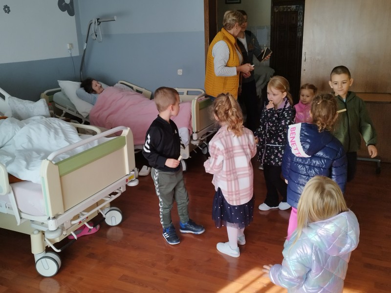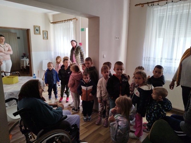 Djeca starijih mješovitih skupina, Ribice i Žabice, posjetila su 1. listopada 2024. godine sa svojim odgojiteljicama, obiteljski dom za starije Ivan Jug u sklopu obilježavanja Međunarodnog dana starijih osoba. Uz ugodno druženje djece i starijih, pjevanja raznih pjesmica i razgovor, uručili smo djedovima i bakama voće, slatkiše i srceta koja su izradila djeca. Jedna starija baka izrecitirala je i otpjevala staru pjesmicu iz njezinog djetinjstva. Cilj obilježavanja i posjete doma za starije je poticati kod djece razvoj osjećaja pažnje i brige za starije i nemoćne tj. za sve osobe kojima je potrebna naša pomoć. Zahvaljujemo se gospođi Nadi Jug i djelatnicima doma na dočeku, strpljenju i ugodnom okruženju te slatkišima kojima su obradovali djecu.
