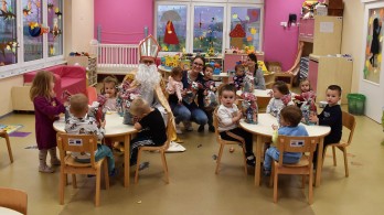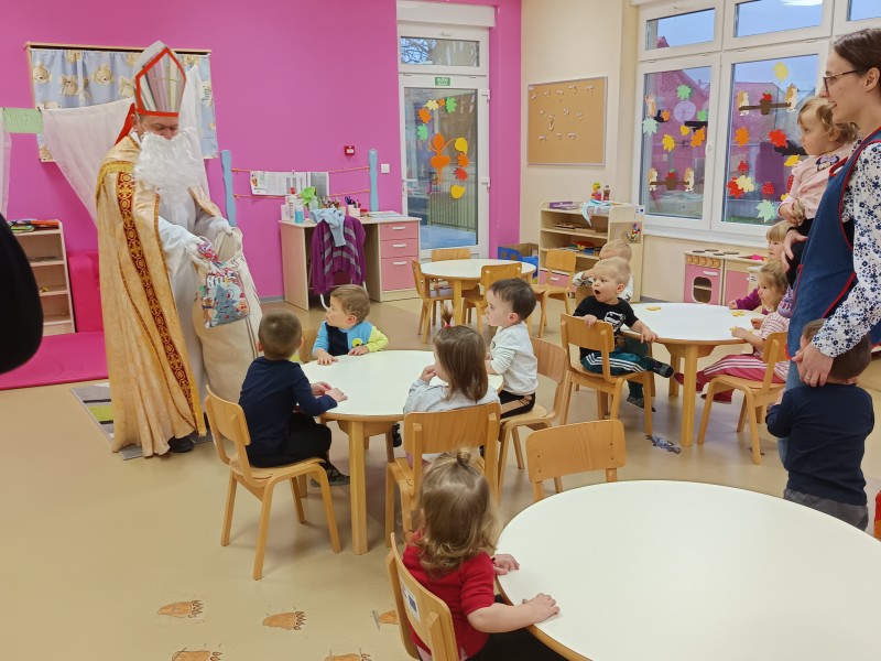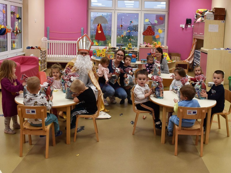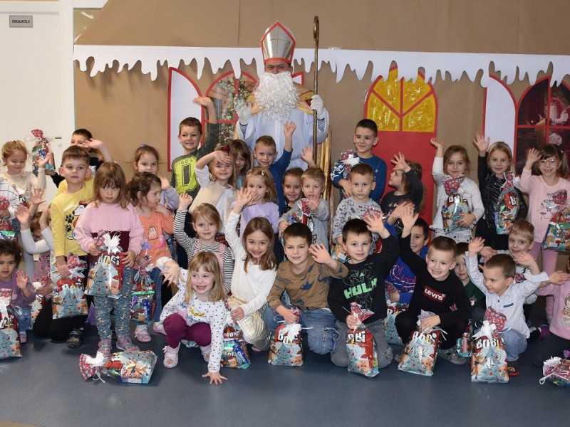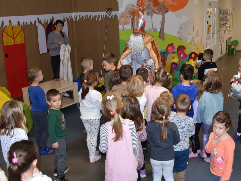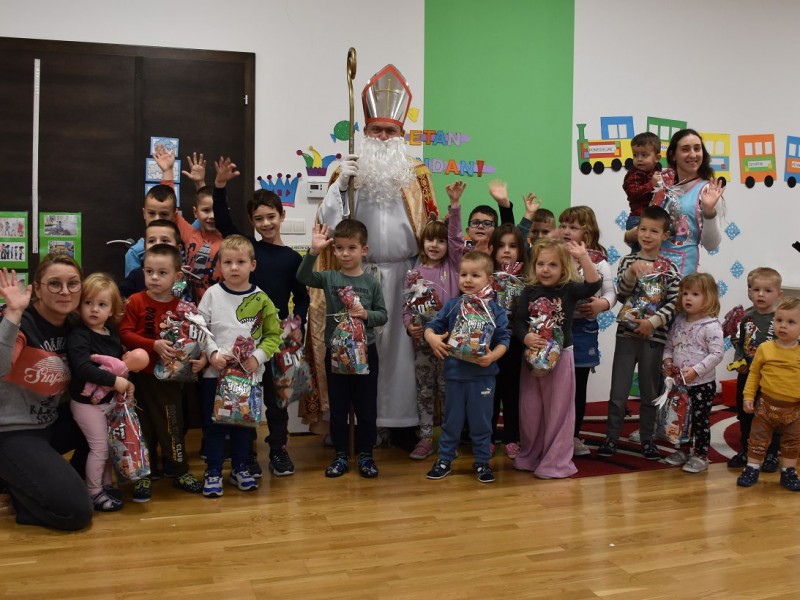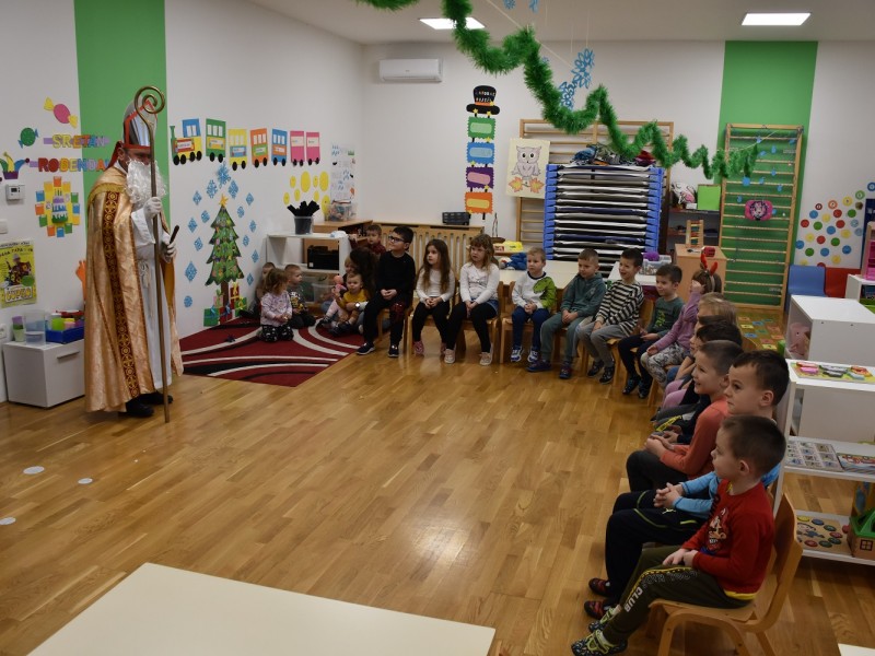 Odgojiteljice jasličkih skupina, objasnile su mališanima da će ih posjetiti sv. Nikola i donijeti im darove ako su bili dobri. Neki su bili uplašeni, neki začuđeni a neki nisu bili ni svjesni o čemu se radi dok sv. Nikola nije ušao u sobu dnevnog boravka. Predstavio im se i kratko popričao s djecom te im podijelio darove. Djeca su sjedila za stolom i pažljivo promatrala sv. Nikolu. Uslikali smo se s njime te ga pozdravili. Kada je otišao, djeca su oduševljeno i sretno pokazivala poklone svojim tetama.