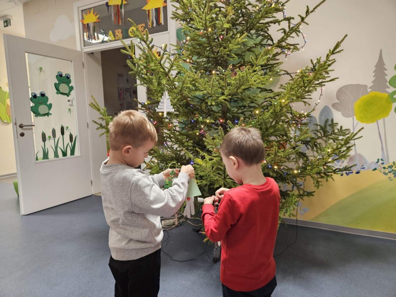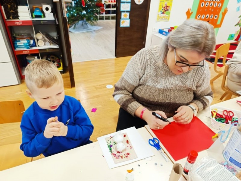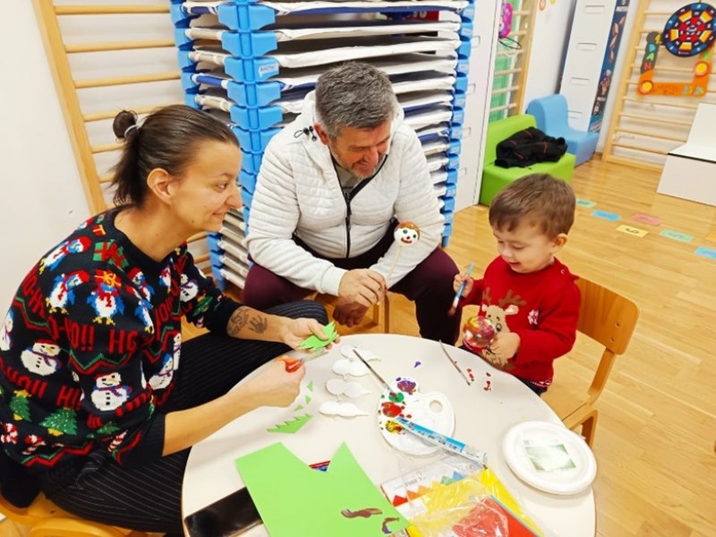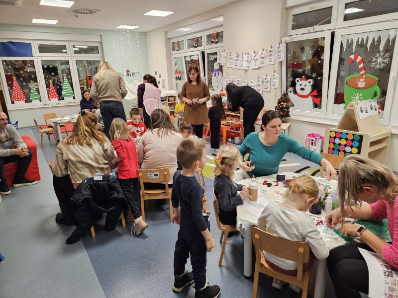 U jeku priprema za Božić i ukrasa za kićenje prostora i bora u vrtiću, organizirane su božićne radionice s roditeljima i djecom u sobama skupina. Uz božićne pjesme, razgovor i kreativnost prilika je to da se svi međusobno upoznamo, zbližimo. Skupine iz Adžamovaca su radionicu odradili zajedno, dok su skupine u Rešetarima imale zasebno.