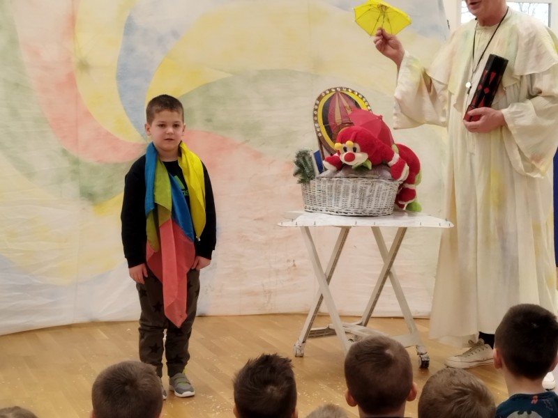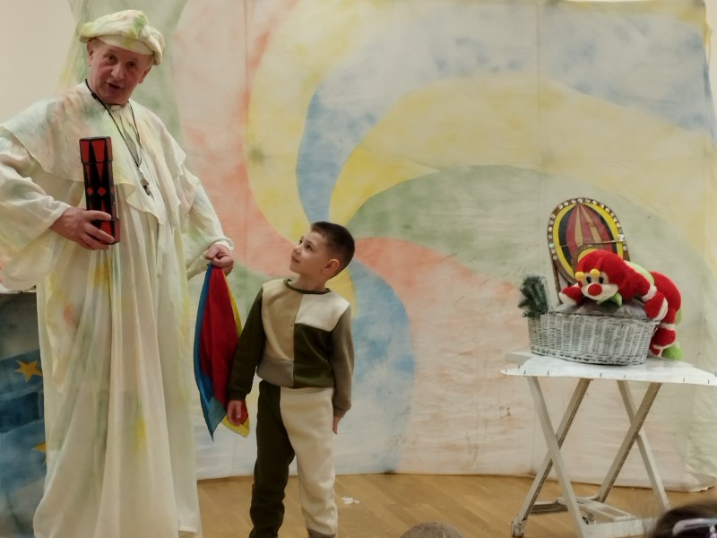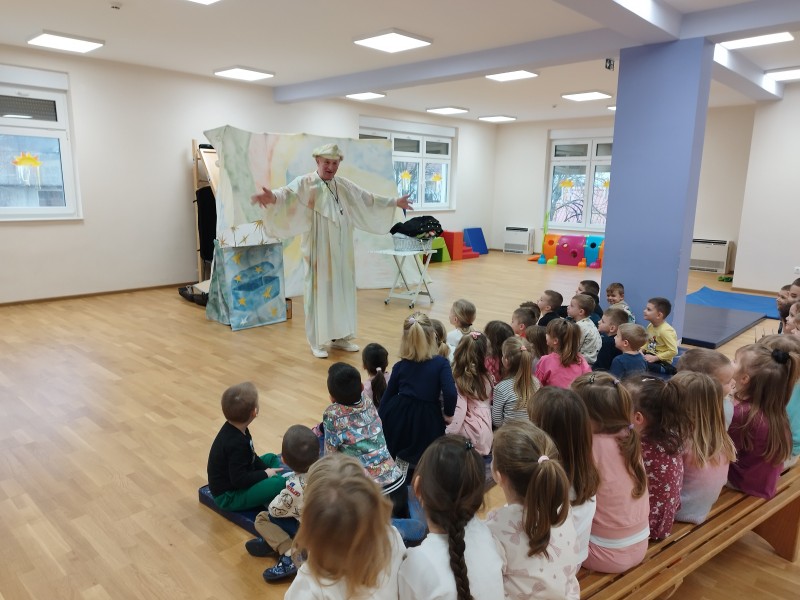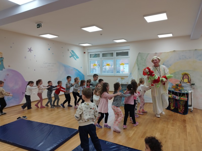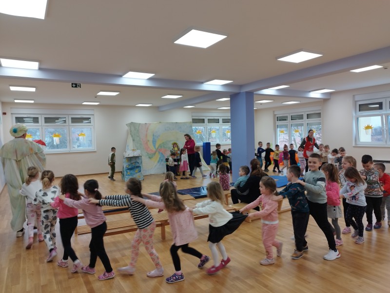 Djecu predškolske dobi danas je zabavljao Mak teatar s predstavom Šareni Gustav. Predstava je bila interaktivna, potičući djecu na sudjelovanje od početka do kraja. Djeci su bili najzanimljiviji dijelovi kada su se koristili magični trikovi mijenjanja boja, nestajanja ili izvlačenja mnoštva predmeta iz prazne kutije. Na kraju su uz stonogu Gustava svi zajedno zaplesali.