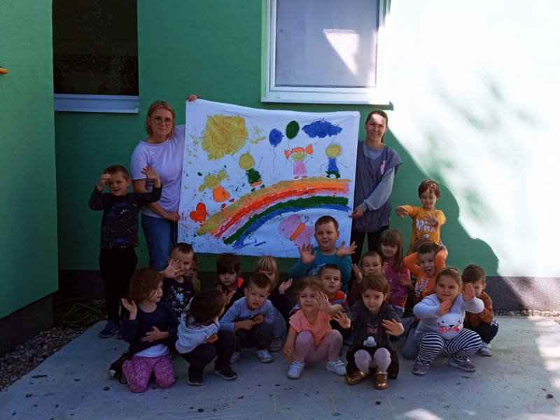U suradnji sa Osnovnom školom Ante Starčevića Rešetari, djeca iz skupina Žabice i Ribice, okupila su se u školskom dvorištu zajedno sa pedagoginjom, knjižničarkom i učenicima kako bi na listiće pisali poruke i crtežima iskazivali svoje želje i prava odraslima i svijetu koje su potom stavljali na „Stablo poruka“. Ujedno su oslikavali školsko dvorište kredama u boji s istim ciljem. Također se izradio i video s dječjim izjavama o dječjem tjednu koji su snimile pedagoginja Marija Dautović i knjižničarka Daniela Gubić iz osnovne škole u skupinama Žabice i Ribice.