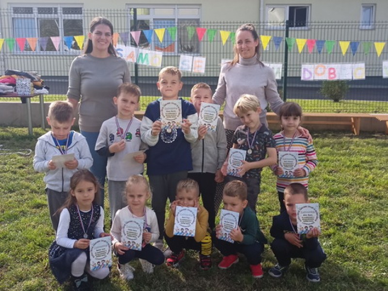 Zadnjeg dana Dječjeg tjedna odgojiteljice su se potrudile da djeci dan protekne u što većoj radosti pa su tako osmislile razne vrste funkcionalnih i natjecateljskih igara s pravilima uz pjesme koje su na razglasu puštali učenici osnovne škole. U područnom objektu odgojiteljice su aktivnosti provele u dvorištu vrtića dok su se aktivnosti u centralnom objektu odvijale na travnatoj površini između vrtića i škole za starije skupine i u sobi dnevnog boravka za jasličku skupinu. Nakon završetka svih igara djeci su se podijelile zahvalnice za sudjelovanje u dječjem tjednu i medalje s porukom da nije važno pobijediti nego sudjelovati. Za kraj je predsjednica Društva naša djeca Rešetara Sanja Kolaković u ime društva djecu počastila slatkišima.